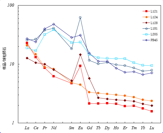 ④ 在进行标准化过程中,同时计算了相关稀土元素的参数,包括ΣREE、ΣLREE、ΣHREE、LREE/HREE、LaN/YbN、δEu、δCe等