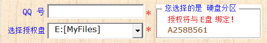在注册窗口的选择授权盘项目中可以选择一个硬盘分区(如D盘,E盘等) 。以下是几种选择授权盘的实例: